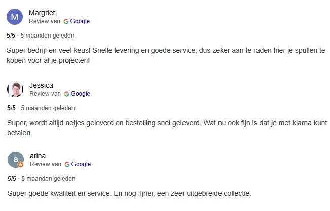 De reviews over 123Paracord zijn lovend. Hier drie voorbeelden van 5 sterren Google-reviews: